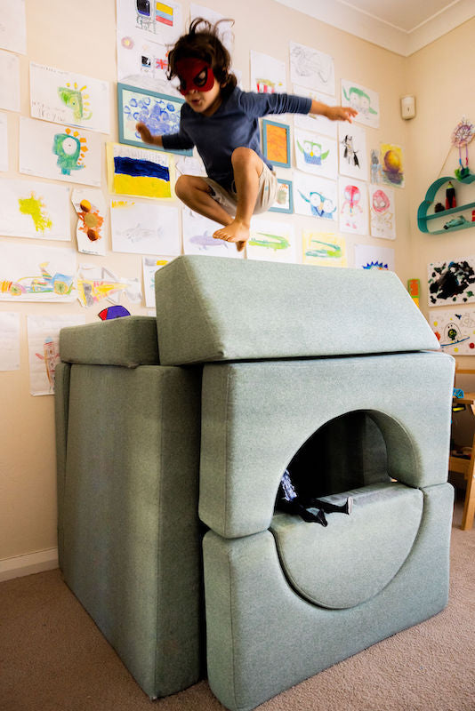 Each pair of base cushions can be joined together with a unique Velcro tab system allowing stronger builds when needed and keeping pieces together for times like sleepovers.